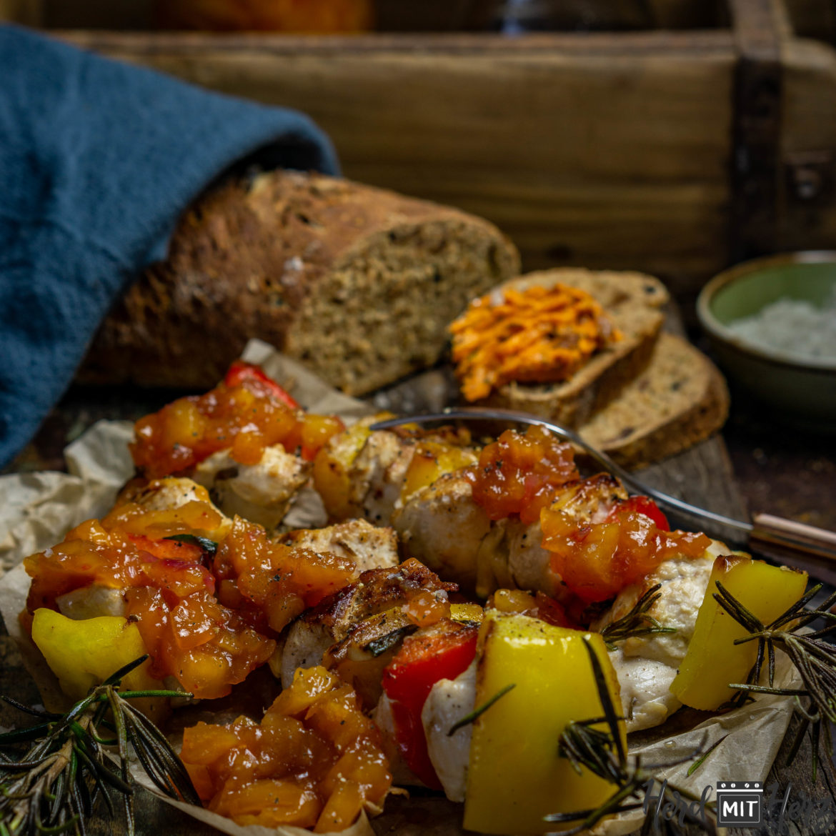 Hähnchenspieße sind perfekt für jeden Grillabend, aber auch auf dem Herd in einer Grillpfanne zubereitet, sind sie ein schmackhaftes Mahl. Ich finde, zu Hähnchen passt immer eine fruchtige Sauce, Marinade oder wie hier in dem Fall ein Chutney. Da die Frucht auch eine pikante Note haben soll, habe ich Chiliflocken zugefügt. Einfach, schnell und lecker, so muss es sein. Das Rezept für mein Mango Aprikosen Chutney, findet ihr gleich hier unten…