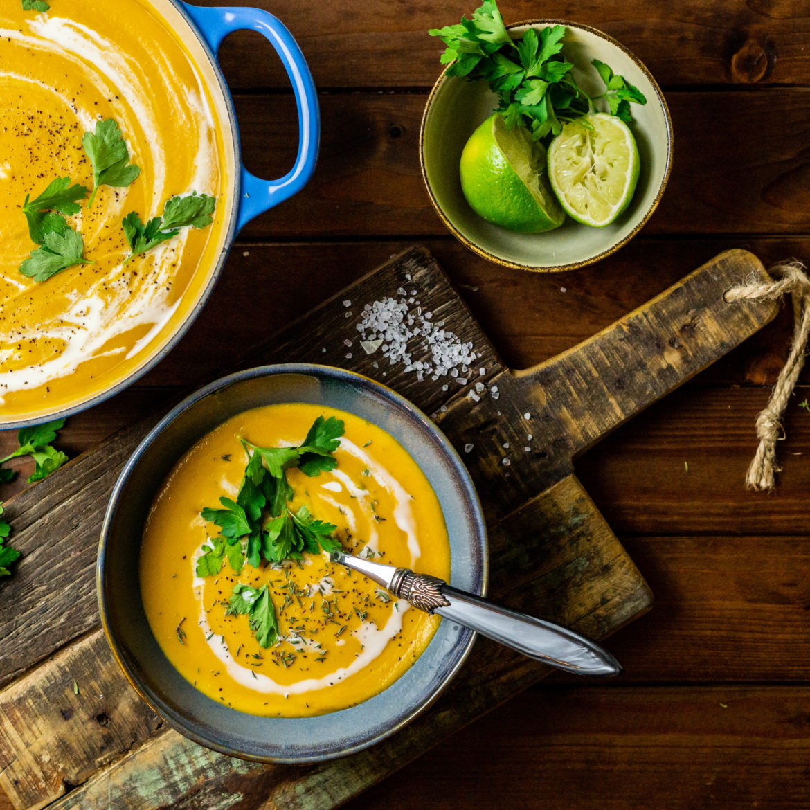 Die Suppe ist in dieser Version vegan gehalten, kann aber auch nach Belieben noch abgeändert oder erweitert werden. So denke ich, dass sich pikante Hähnchenspieße dazu sehr lecker schmecken. Und bitte denkt an den Thymian, der ist elementar wichtig.