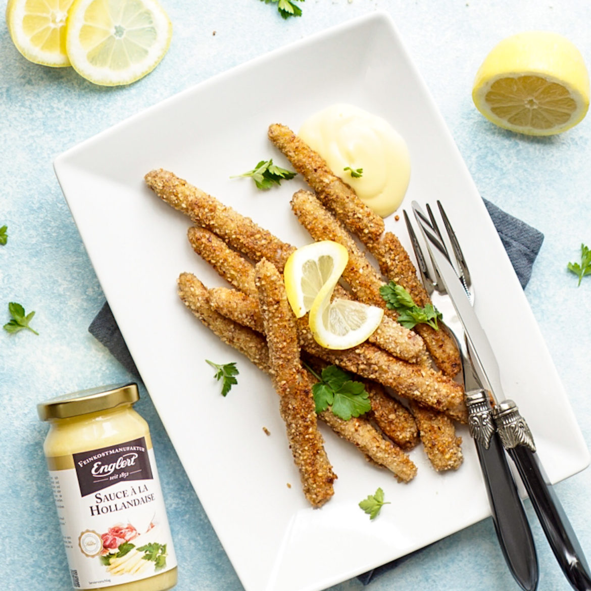 Die Spargelsaison beginnt und ich habe eine tolle Idee gesehen, die ich unbedingt aufgreifen wollte. Den Spargel einmal in einer knusprigen Variante zuzubereiten, ist eine leckere und abwechslungsreiche Alternative. Zusammen mit meinem Kooperationspartner Feinkost Englert, habe ich den Spargel mit einer Mischung aus Pekannüssen und Dinkelbröseln ausgebacken und mit der feinen Sauce Hollandaise abgerundet.